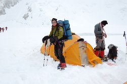 Nel primo pomeriggio, sotto un po' di neve, Annalisa è finalmente giunta al Campo Base a circa 5100m. Allestimento del campo e un po' di riposo. I prossimi giorni il meteo non promette nulla di buono... occasione per riposarsi un po' e cercare di acclimatarsi al meglio. Occorre recuperare tutte le energie: ora inizia la parte alpinistica.